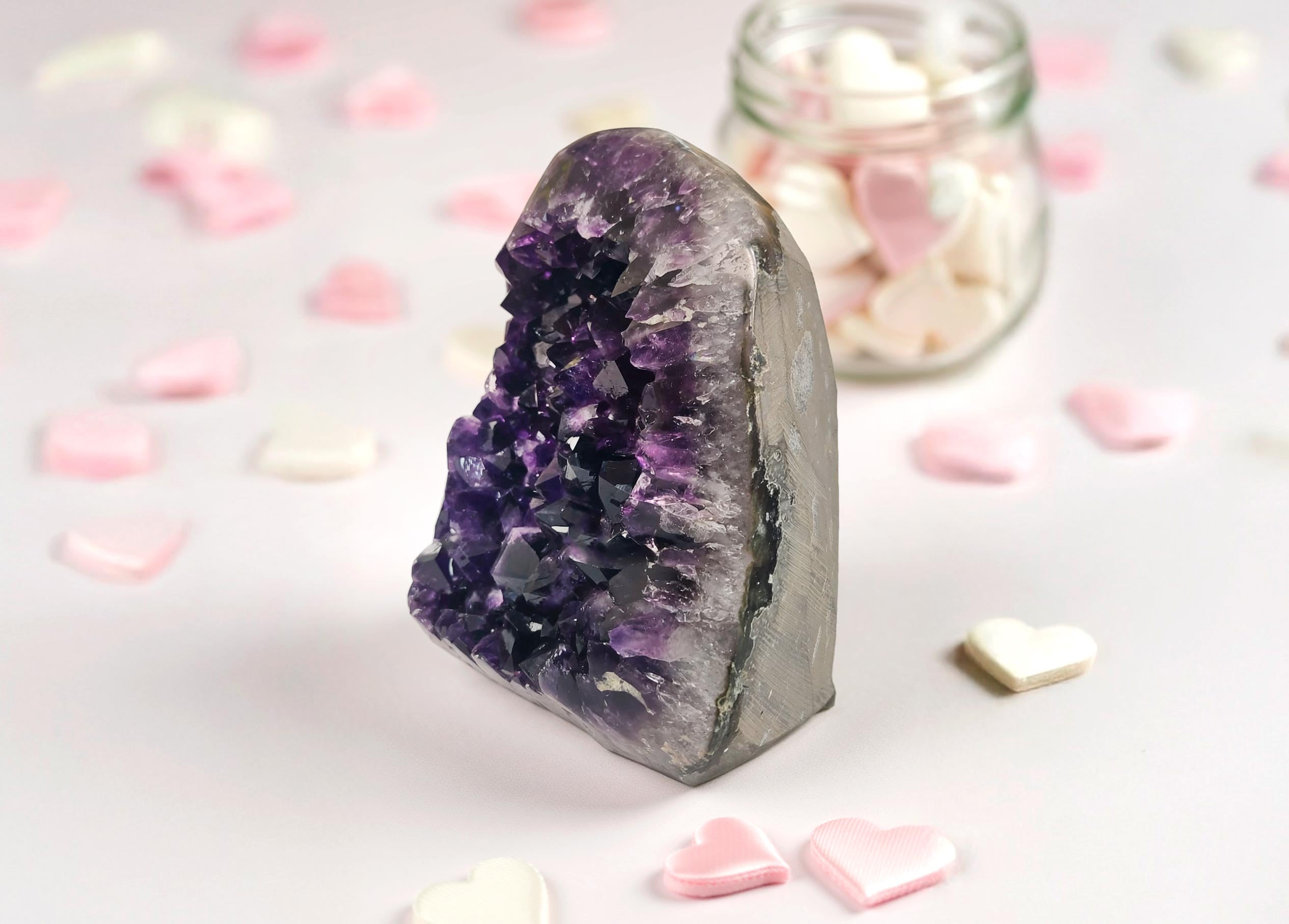 Celebrate love with the timeless beauty of natural amethyst crystals.Each piece in our collection is hand-selected for its exceptional quality, deep violet hues, and romantic energy.