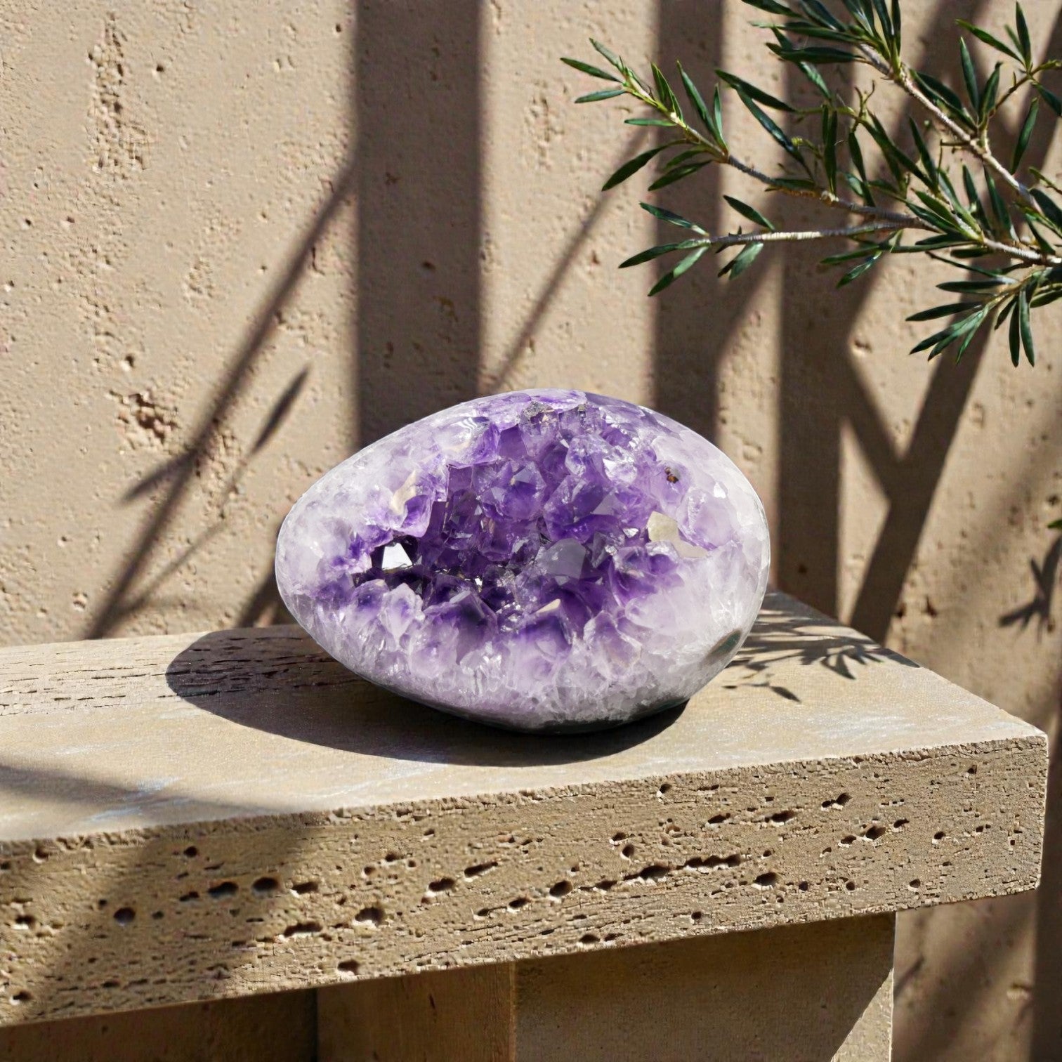 We carry a curated range of amethyst eggs, from intimate display pieces to large-format statement decor. Each is a unique specimen — once sold, it's gone.